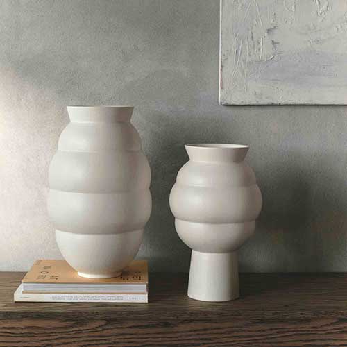 本コレクションは、「Tortus」という名で知られる陶芸家Eric Landon(エリック・ランドン)とのコラボレーションにより、Knabstrupは伝統的な職人技と現代的な生産技術を融合させています。5つのユニークな花瓶は芸術的な造形に高品質な釉薬を施しており、ポルトガルで製造されています。この協業により、Steltonグループは新たなデザインアクセント手に入れ、陶芸アート作品を幅広い層に提供しています。